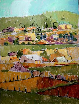 Am so happy with all the new material gathered in the past six weeks, I have decided to begin several large canvases and work on them through the winter months. So, I will be “blocking in” a few more and will keep you posted on their progress via this journal.