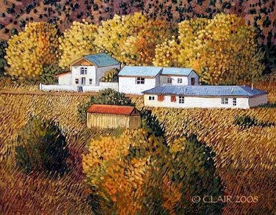 11″x14″ Color Study in oil for larger painting (30″x30″-“ALMOST HOME) — This study is painted on gessoed Italian Wood Panel – Framed in Gold with Linen Liner. For more information, please call MC LARRY FINE ART GALLERY, 225 Canyon Road, Santa Fe, N.M. (505) 988-1161.