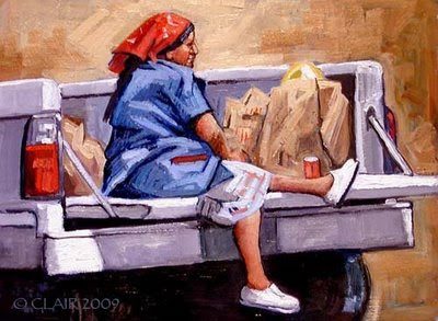 – 6″X8″ Original Oil Painting, Framed in Gold with Linen Liner. Oil study/Saturday’s groceries – waiting to go home to the pueblo and prepare for the Feast Day.