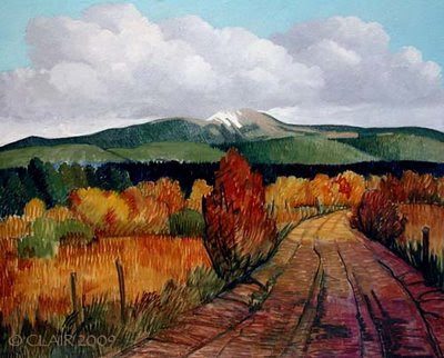 7109cpr_gz_wildernessgt_500-9619570ROAD TO WILDERNESS GATE” – 24″x30″ Oil on Belgian Linen – Work in Progress – The Glazes. Glazes are transparent, semi-transparent color which I apply over the underpainting. I believe this phase of the painting is essential to add depth and vibrancy to the final painting. After the painting is completed (the next stage is the application of opaque colors) the light enters into the canvas and is refracted back through the layers of color. Somehow this method has evolved over the years and seems to work for me. DC