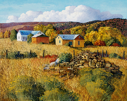 GETTING READY FOR WINTER HERE IN NORTHERN NEW MEXICO! A MAN IS AS RICH AS HIS WOODPILE – 13″x19″ Archival Giclee – now available through my online gallery store – Click here to purchase.