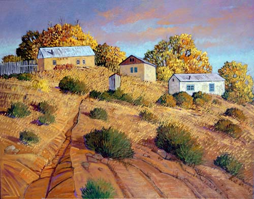 Hello!  This past Sunday, after a lovely drive through Taos Canyon and seeing some early bird apple trees in bloom at Velarde, I was driven up a very narrow dirt road to an old compound of houses in Tesuque.  There it was… a casita, a perfect studio with wonderful skylights, brick floors, a fireplace and room for a vegetable garden.  It’s that time in my life when I want to simplify, experiment and explore new ideas.  So, within the next three weeks I will pack up, give away, or sell 25 years of my life in Taos — will take as little as possible in order to have a true New Beginning.  From now until the end of the month my e.mails will be a little more frequent because these auctions will include some of my prized favorites as well as my current studio inventory at very special prices.  This is a huge adventure…you are invited to join me. If you have any questions, just give me a call (575)758-7454.  Best regards, Donna – Taos