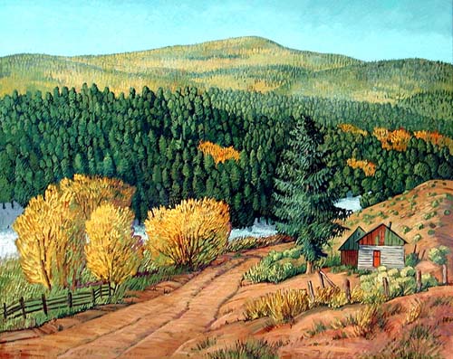 “HIGH COUNTRY AFTERNOON” (On the road to Chama, N.M.) 24″x30″ Original Oil on Belgian Linen, Framed in Gold with Linen Liner – Sold.