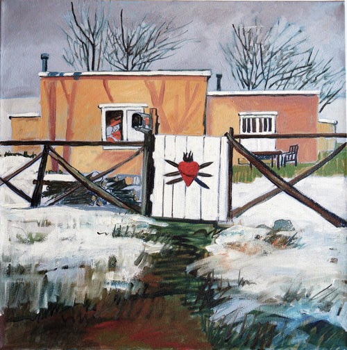 Studio No. 314 – CORAZON SAGRADO – 20″x20″ Original Oil – Work in Progress (Glazes).  Color Notes:  Sky:  Permalba White, Payne’s Grey, Cerulean Blue.  Building:  Yellow Ochre, Italian Pink, Burnt Sienna – with Dioxazine Purple in the shadows.  Foreground:  Burnt Sienna, Chrome Oxide Green Opaque, Burnt Sienna and Prussian Blue.  Snow:  I found a wonderful new combination!  Permalba White tinted with Naples Yellow Light.