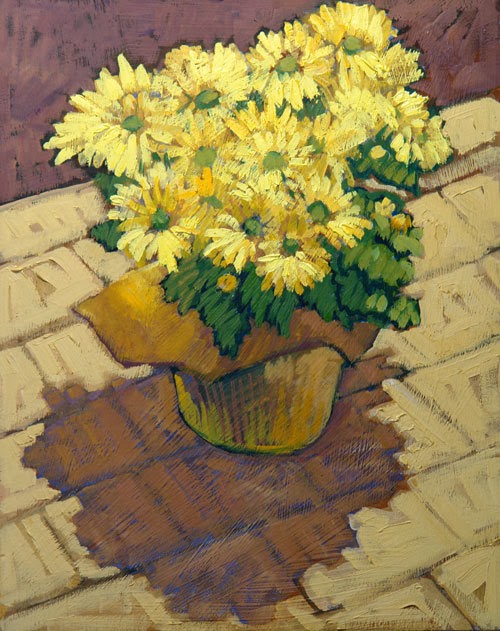 YELLOW MUMS – 10″x8″ Original Oil, Framed in Gold with Linen Liner – To preview/purchase:
