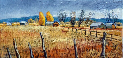 200 Small Paintings No. 101 – ALONG RANCHITOS (Taos, New Mexico) – New 6″x12″ Original Oil on Belgian Line, unframed – Sold