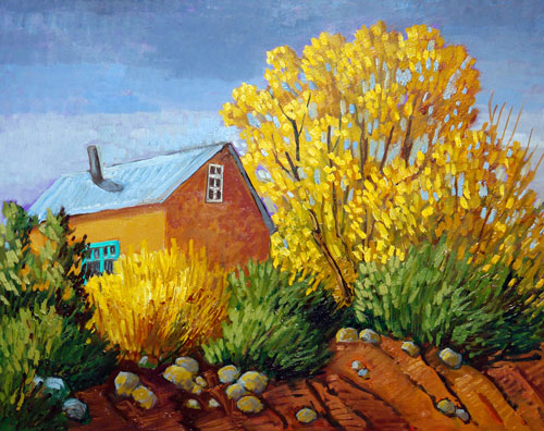 200 Small Paintings No. 112 – SANCTUARY (Rio Chiquito, New Mexico) – New 8″x10″ Original Oil on Panel, Framed in Gold with Linen Liner. Completed 7/14/15. Preview/Purchase.