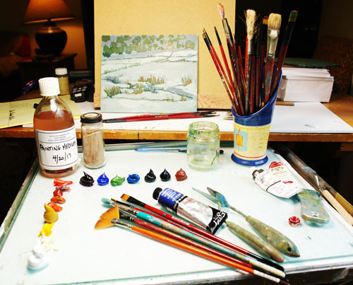 Working on fine tuning my website this morning (yes, that is an essential to being an artist now) with master tech, Dan Kuehn of Questa, New Mexico. Still painting for our studio exhibit 3 ARTISTS OF TAOS – Vistas del Norte which takes place here in Taos over the Memorial Day weekend – 27, 28 and 29. Doug Yeager and I started hanging his photos and my paintings yesterday – really looks good!