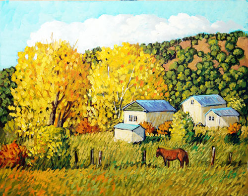 Studio No. 1117 – AUTUMN AFTERNOON (Las Trampas, New Mexico) – New 8″x10″ Original Oil on Italian Gessoed Panel, framed – Sold (Pasadena, Calif.)