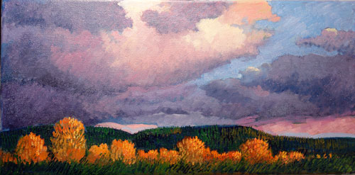 Studio No. 2117 – PUESTA DEL SOL (Setting Sun – Taos, New Mexico) – New 8″x16″ Original Oil on Canvas, framed – Preview Painting.