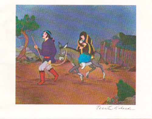 This was my first experience of being introduced to the Native American culture. As we laughed and shared our stories, we were women together trying to support our families with our work. In later years I would cross paths with Pablita – once when she was helping her daughter, Helen Hardin, hang her solo gallery exhibit in Santa Fe. They are both gone now and the world is a much sadder and less colorful place without them.