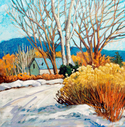 PAINTINGS AND PRINTS ONLINE – “ARROYO SECO” (New Mexico) – 10″x10″ Original Oil Painting, framed – https://www.ebay.com/str/Donna-Clair-Art…