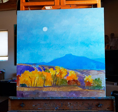 ON MY EASEL TODAY – Studio No. 621 – CIELO AZUL – Work in Progress – 40″x40″ Original oil on Belgian Linen – Underpainting – Stay Tuned!