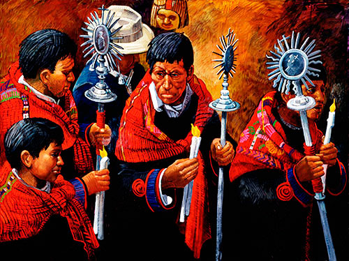 BEARERS OF LIGHT – 1991 Easter Sunday Morning – The Cofradia of Santo Tomas Church, Chichicastenango, Guatemala – remembering……