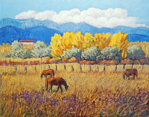 TAOS PASTORAL (Taos, New Mexico) NEW! 8″x10″ Original Oil on linen panel, framed in gold with Linen Liner – SOLD
