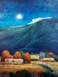 29 October 2023 (Llano Quemado, New Mexico) – 3AM Friday – Moonshadows on the wall in my bedroom – the Hunter’s Moon. Lifted the shade and the brilliant orb, low on the horizon over Tres Orejas, shone directly in my line of vision! I said a little thanks and watched it disappear behind the mountains. Big smile all the way back to bed! Lovely!!