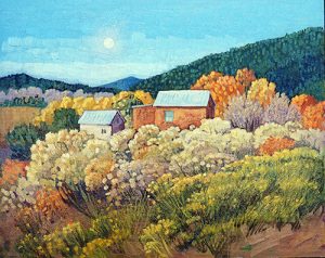 AFTERNOON MOON (Placita, N.M.) – 8″x10″ Original Oil on linen panel, framed in gold with linen liner, free shipping – https://www.ebay.com/itm/393914302827
